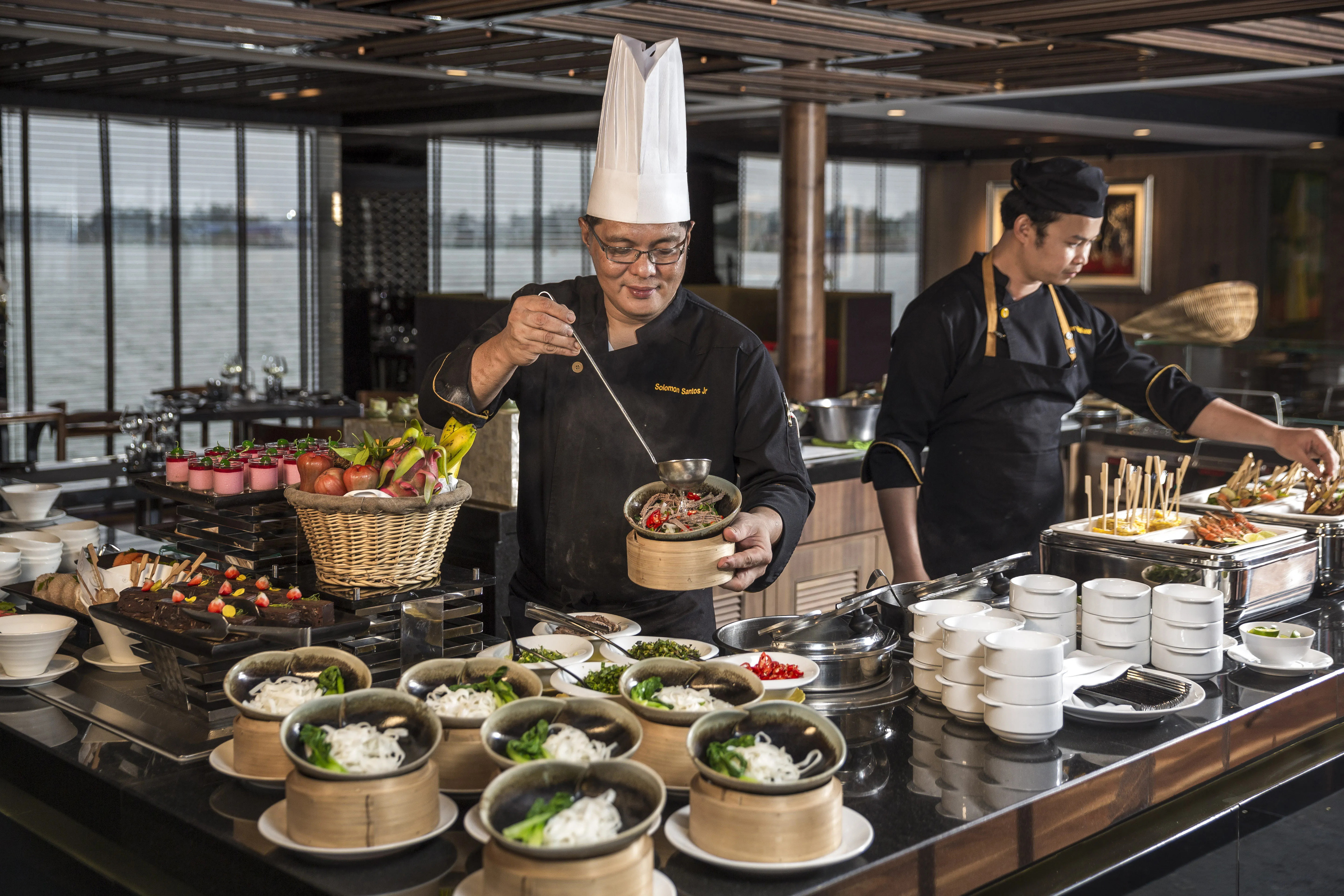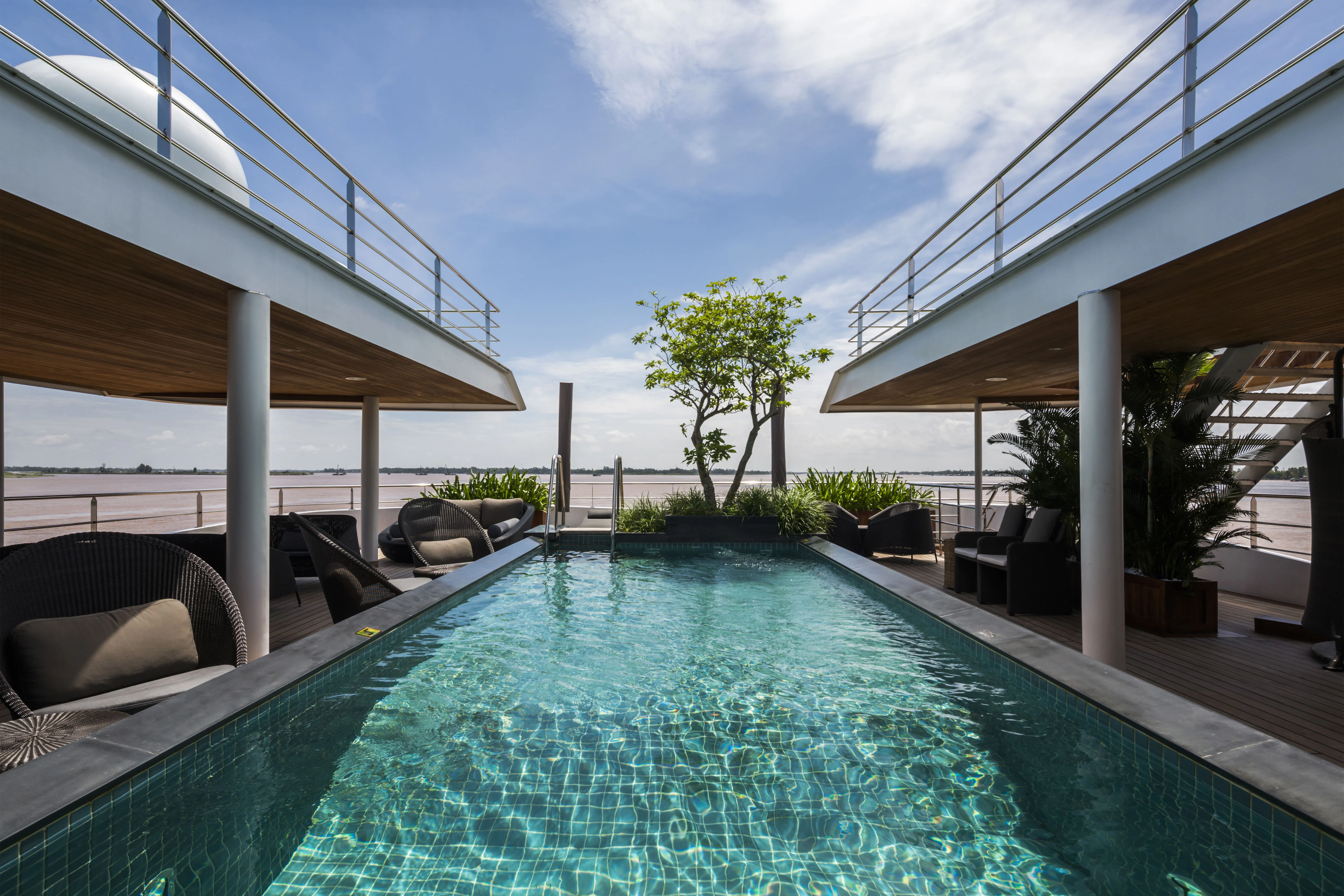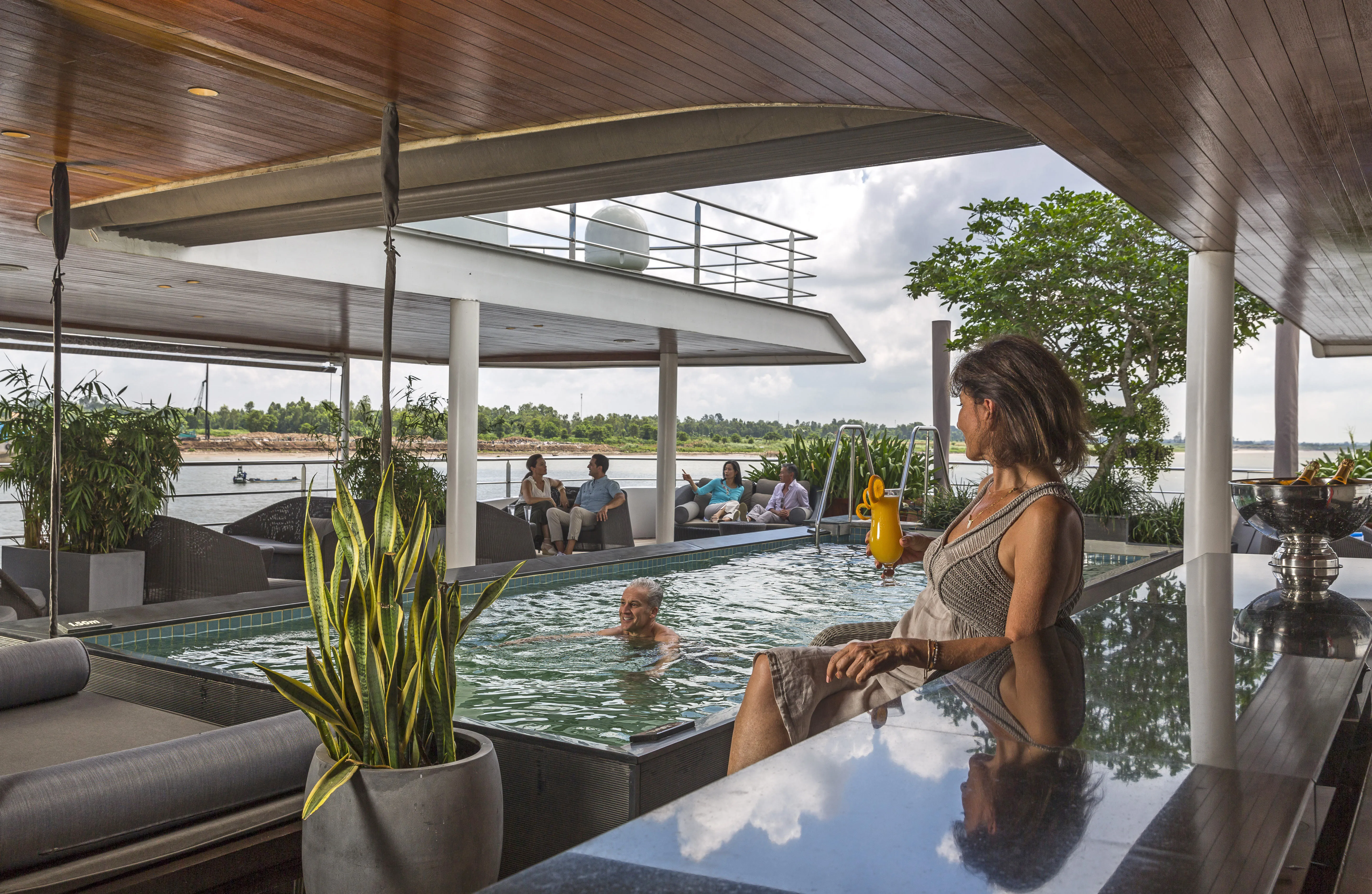Get an outfit ready for an evening of style with a Sundowners cocktail reception on the sundeck against the backdrop of Phnom Penh's lights and stunning scenery as we approach the capital of Cambodia. (B,L,D)