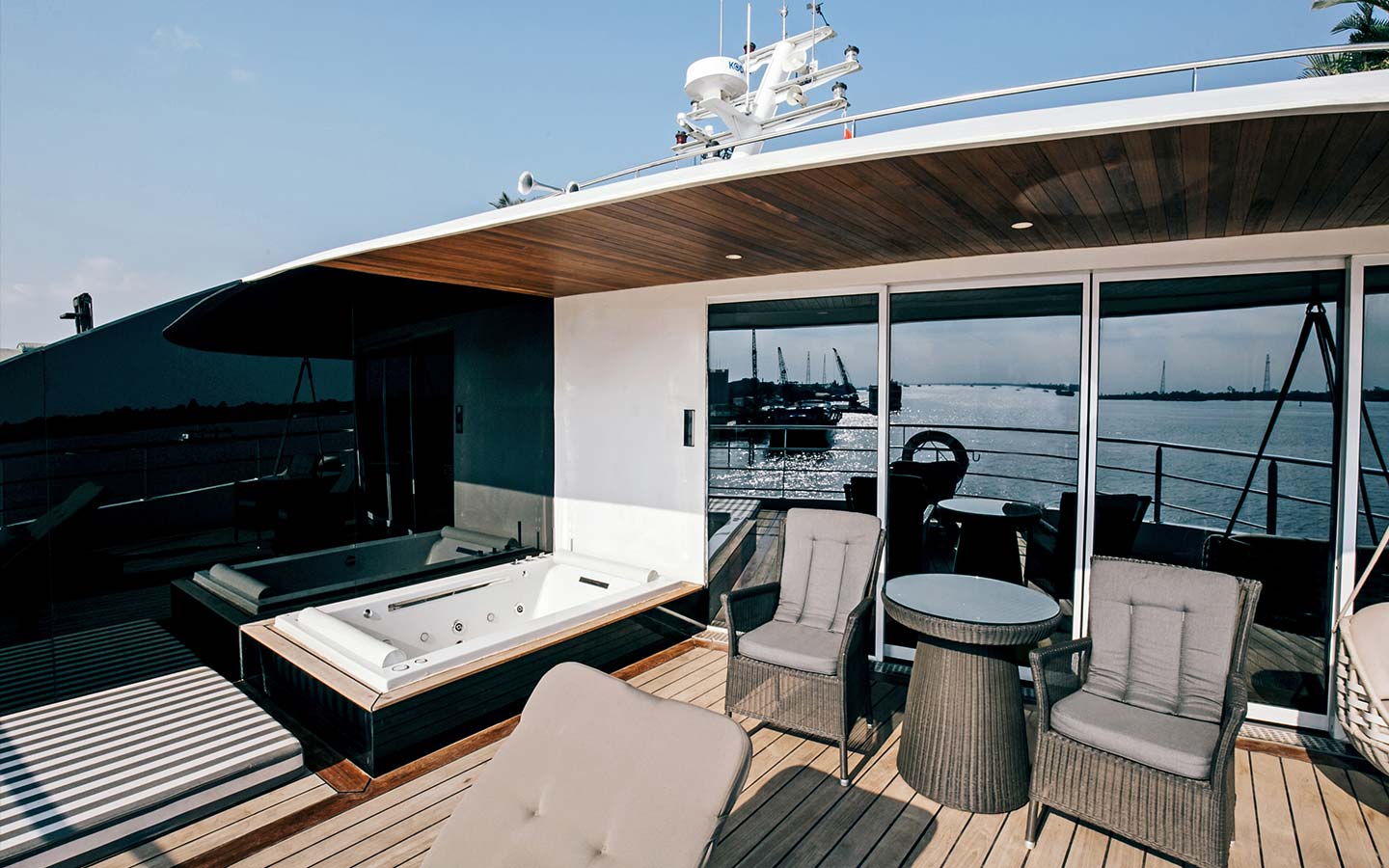 You may want to start the day with some exercise in the on-board gym, an early morning yoga class or relax your muscles in the sauna. Then set off to discover the areas surrounding Tan Chau.