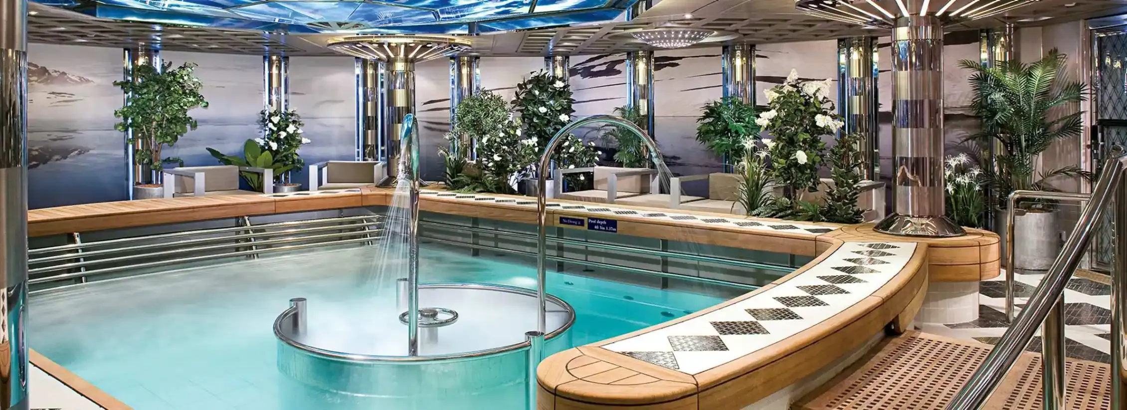 - Wi-Fi Surf Package: Stay connected throughout your journey. Surf the web, use social media, check email and send messages to friends and family. - Featuring floor to ceiling glass doors, spacious private verandas, expansive sitting areas, and comfortable sleeping accommodations with Mariner's Dream beds, our 465-502 sq. ft. suite boasts a deep soaking tub and an independent, full-size shower stall, dual-sink vanities, premium bathrobes, pillow menus, fresh flowers, and binoculars.
