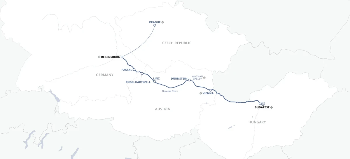 Begin with two nights in enchanting Prague before travelling to Regensburg to embark on your Danube voyage, sailing through storybook towns including Passau, Linz and Durnstein, culminating in imperial capitals Vienna and Budapest.