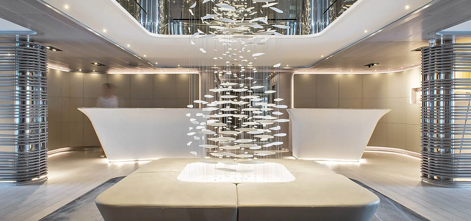 During your journey at sea, make the most of the many services and activities on board. Treat yourself to a moment of relaxation in the spa or stay in shape in the fitness centre. Depending on the season, let yourself be tempted by the swimming pool or a spot of sunbathing. This journey without a port of call will also be an opportunity to enjoy the conferences or shows proposed on board, depending on the activities offered, or to do some shopping in the boutique or to meet the PONANT photographers in their dedicated space. As for lovers of the open sea, they will be able to visit the ship's upper deck to admire the spectacle of the waves and perhaps be lucky enough to observe marine species. A truly enchanted interlude, combining comfort, rest and entertainment.
